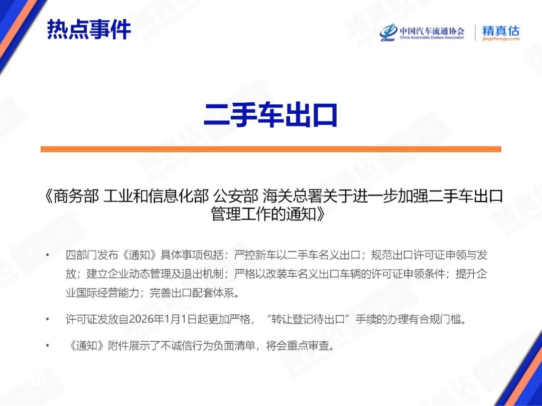 国产汽车的“出海”也包含二手车,政策文件要求严格管理,同时也提出“持续推动二手车出口健康发展”,提供配套支持。上海市9月发布了13项地区政策,树立了正面典型。需要注意的是,二手车出口带动了一系列服务工作的升级,包括检测、售后维修服务、改装、物流仓储等。